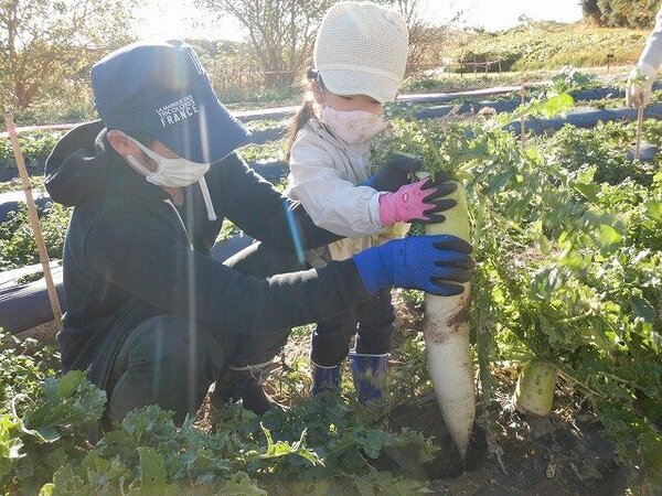 みのりの里で冬野菜の収穫体験(秋じゃが、カブ、ダイコン、カツオナ)を楽しもう!収穫後は、光と風の広場にあるレストラン(INN THE PAR…