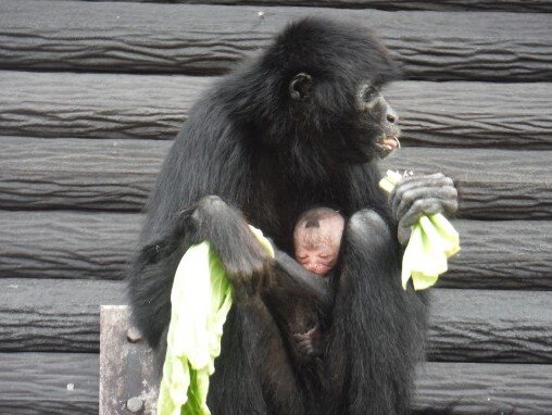 そしてこちらはクモザルの赤ちゃんです。3月3日に生まれました!
