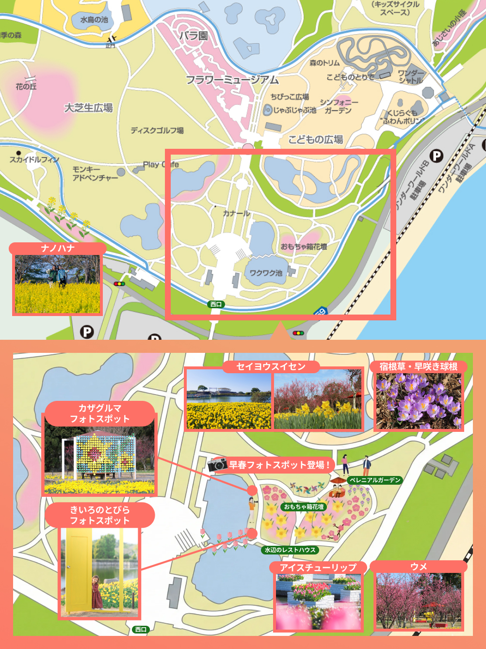 園内でハッピーな風景をテーマに、いろいろな黄色を見つけてSNSに投稿しよう!