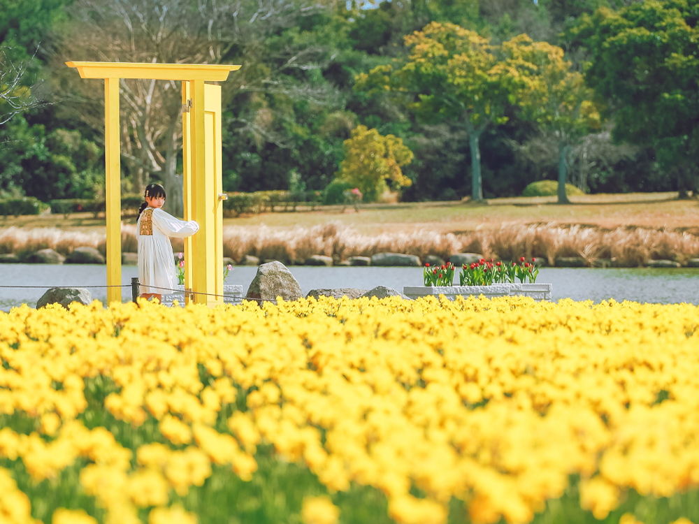 とびらの向こうには黄色いセイヨウスイセンが広がります!