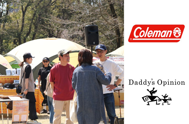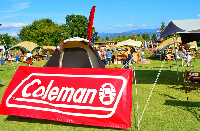 アウトドアブランド「Coleman」の商品によりキャンプシーンを再現した、テントやアウトドアグッズを展示
