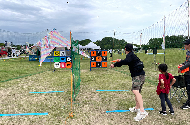 ①フライングディスクを使ってストラックアウトを楽しめるゲーム