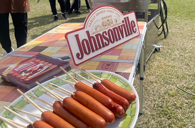 アメリカNO、1ソーセージの試食。ジュワッとあふれる本物の肉の旨味!