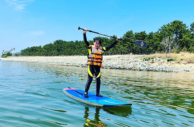 SUP未経験者向けの体験プログラムです。体験時間は約30分。会場は博多湾