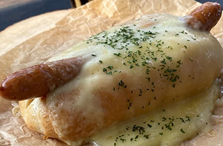 低温熟成・天然酵母パンと国産スモークウィンナーを使ったオリジナルホットドッグにとろーり激盛りチーズで仕上げました。