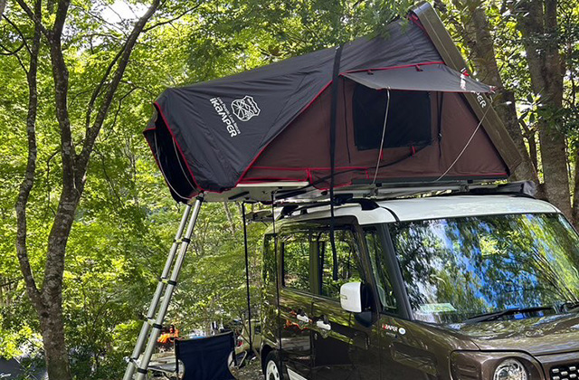 スカイキャンプは、なんと約30秒で開閉可能!車載型のルーフテントです!